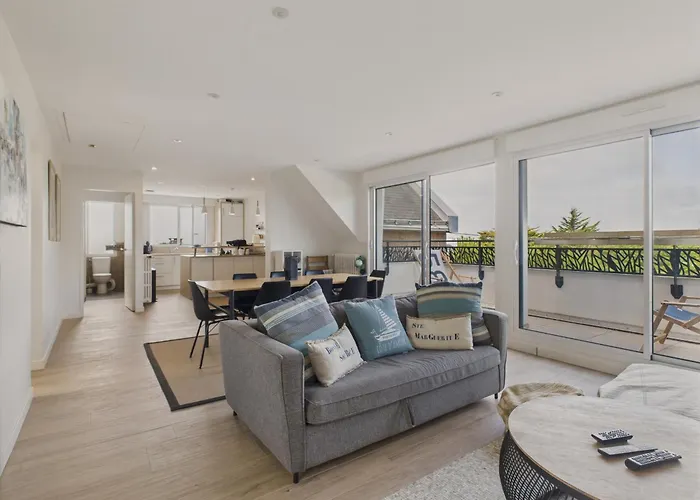 180M De La Plage Appartement 4 Adultes - 4 Enfants Pornichet est situé à environ 3 km de Tropicarium Bonsaï et à environ 4 km du phare du Grand-Charpentier. La résidence spacieuse propose également un Wi-Fi et un parking privé gratuit.